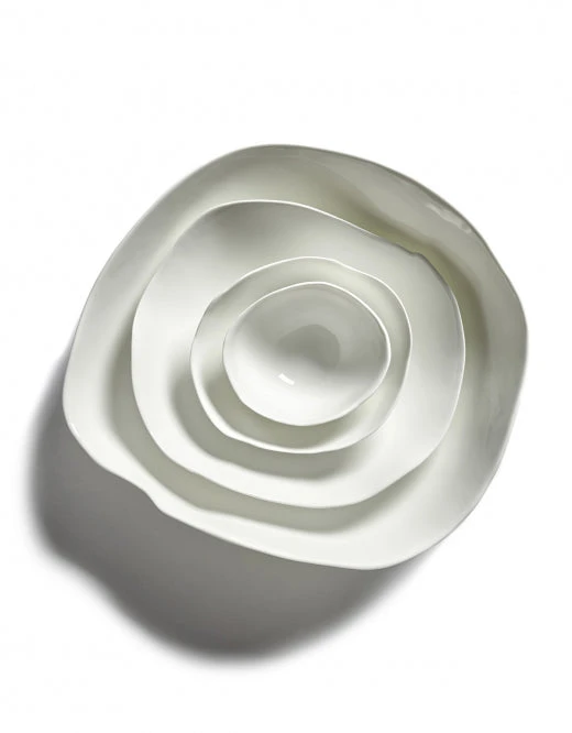 Sjanti Bowl from Serax. Perfect Imperfection Tableware By Roos Van De Velde. This porcelain range is a symbol of innovation in several ways. It is the first time a collection is produced in which imperfection, defectiveness and coincidence are given the chance to play their part during the production process. This dinnerware collection is like balancing on a thin wire: the perfect imperfection.
